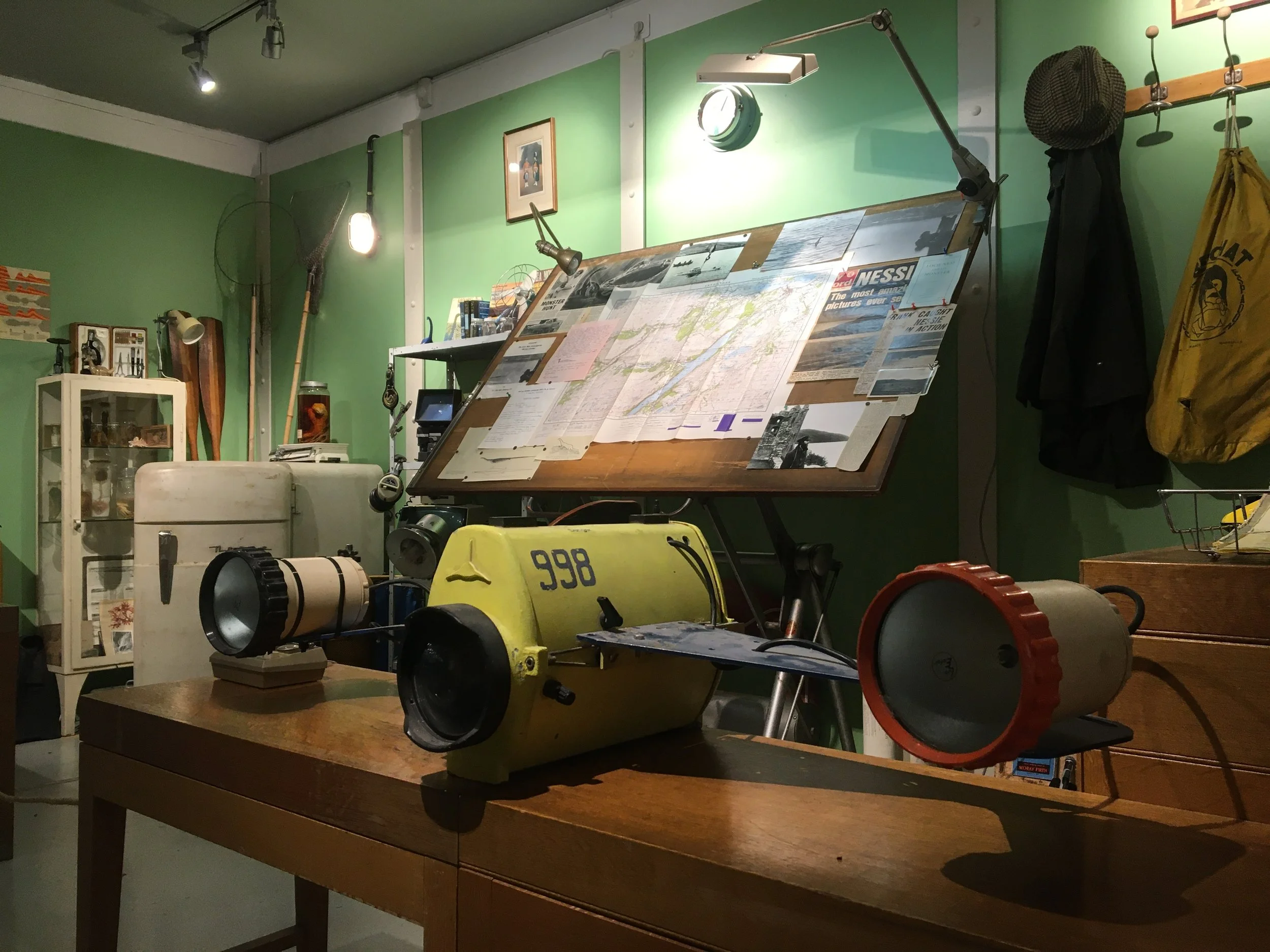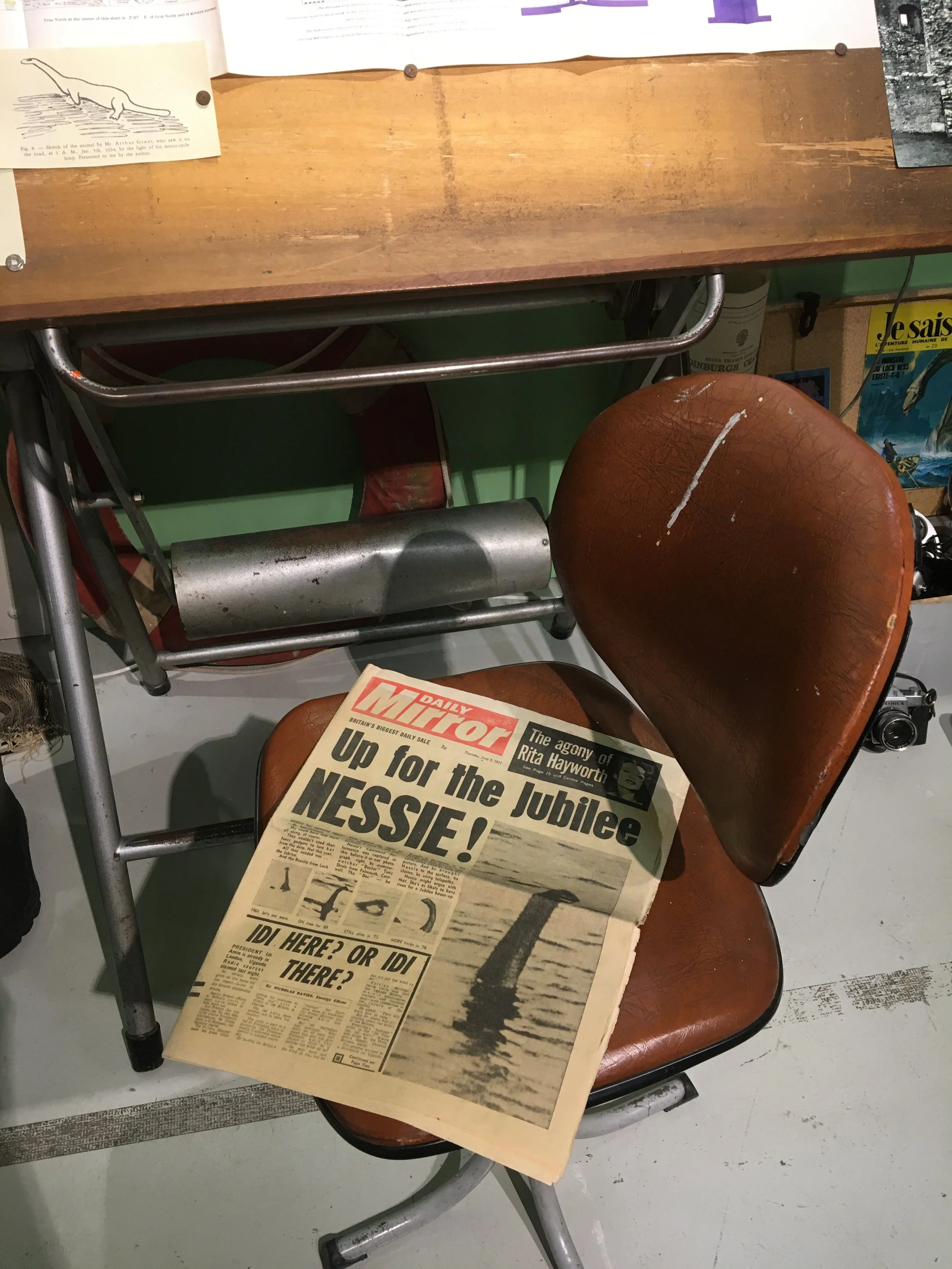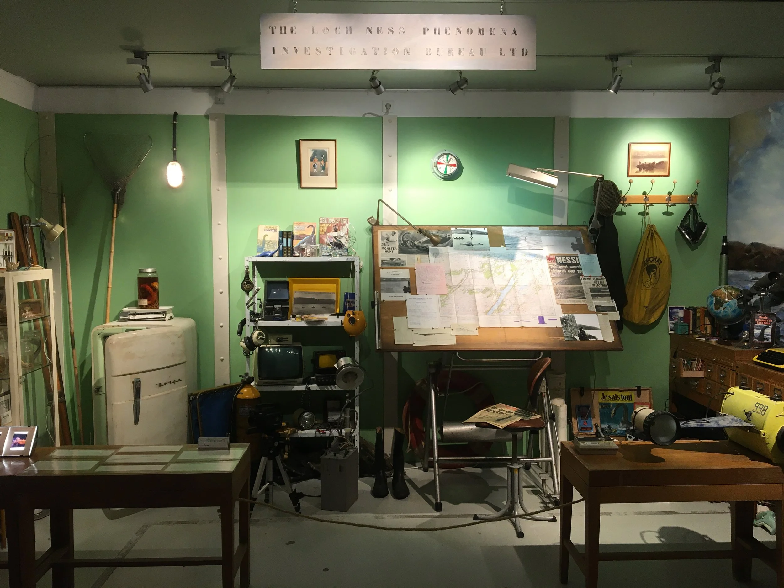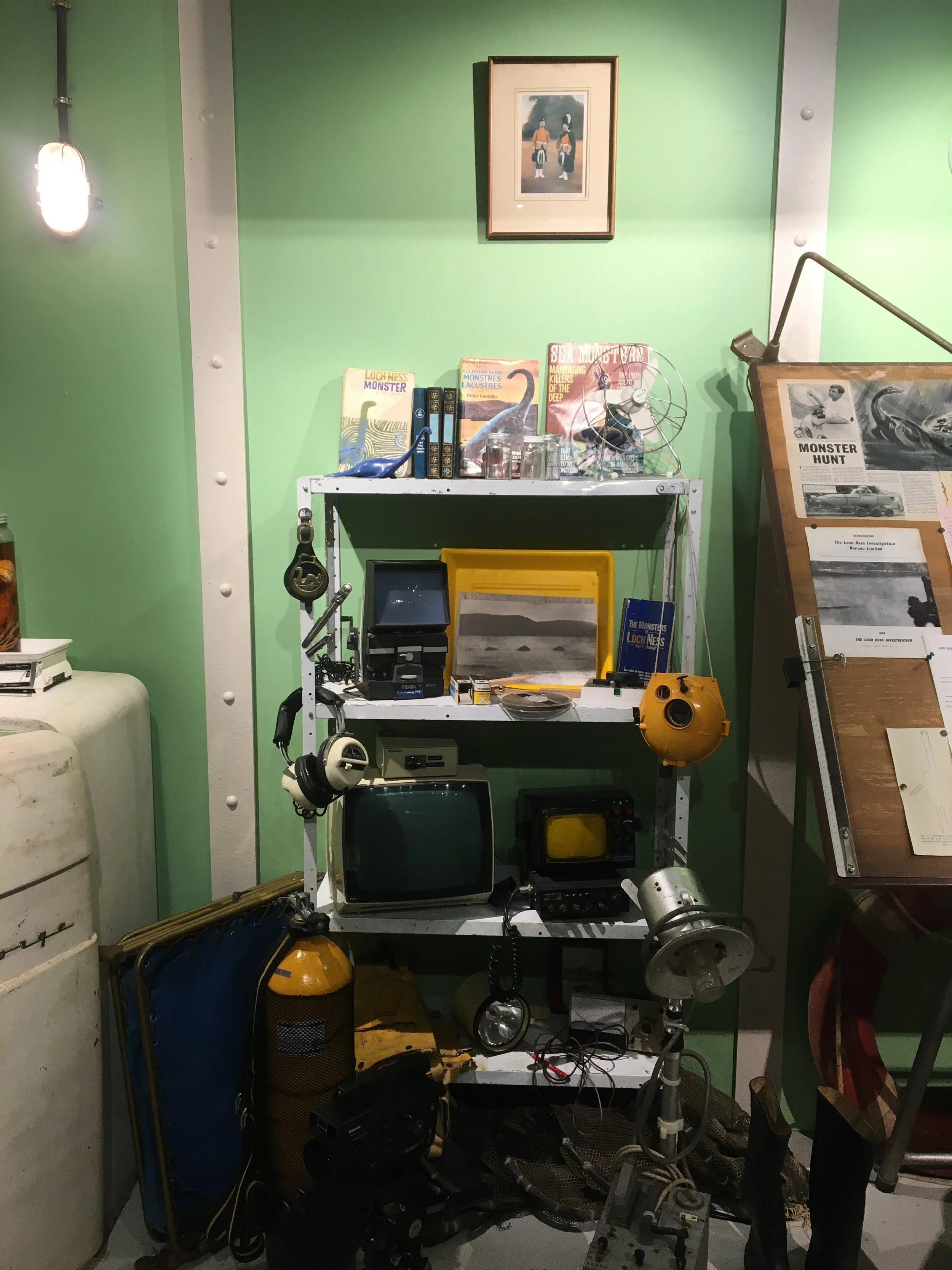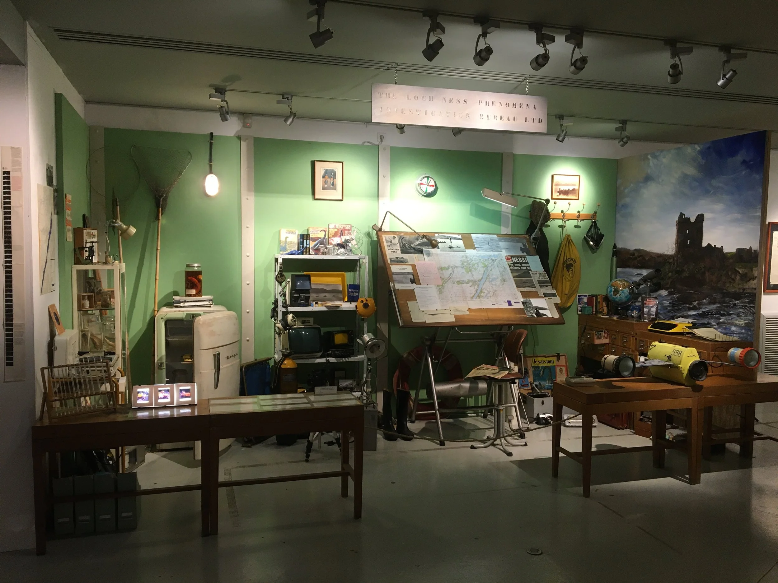 Le parcours commençait au cœur des brumes écossaises, avec une installation dédiée au légendaire Nessie : un bureau d’étude et d’investigation du Loch Ness, recréé dans une ambiance années 60, typique des débuts de la recherche cryptozoologique.