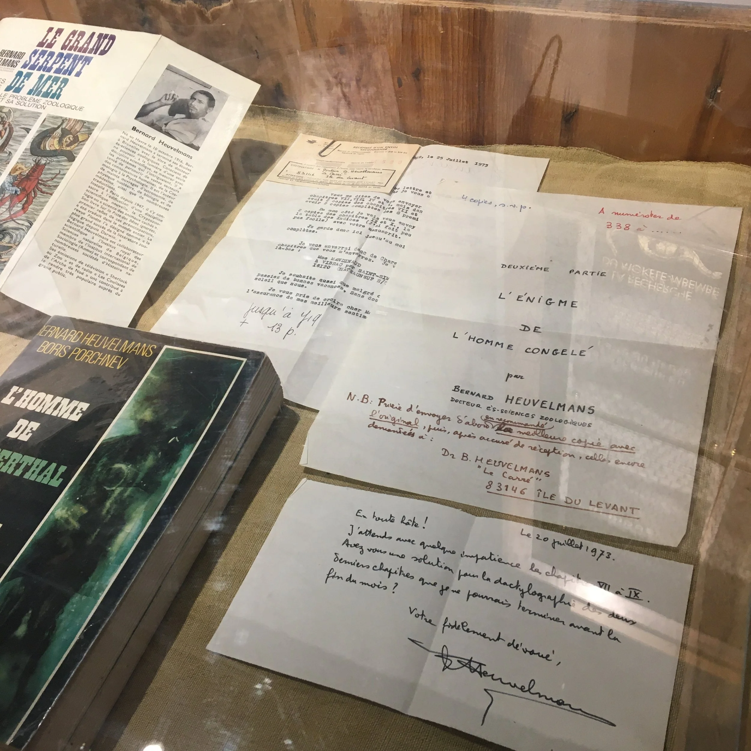 L’exposition présentait une collection de livres rares, d’articles et de documents originaux, dont les principaux ouvrages de Heuvelmans, pionnier du genre.